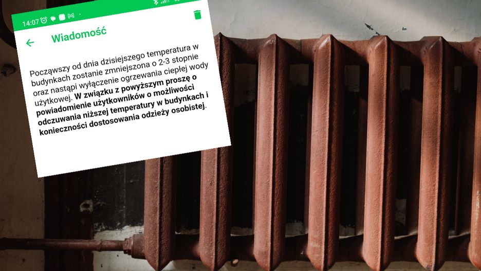Począwszy od dnia dzisiejszego temperatura w budynkach zostanie zmniejszona o 2-3 stopnie oraz nastąpi wyłączenie ogrzewania ciepłej wody użytkowej. W związku z powyższym proszę o powiadomienie użytkowników o możliwości odczuwania niższej temperatury w budynkach i konieczności dostosowania odzieży osobistej – poinformowano w rozesłanej rodzicom wiadomości.