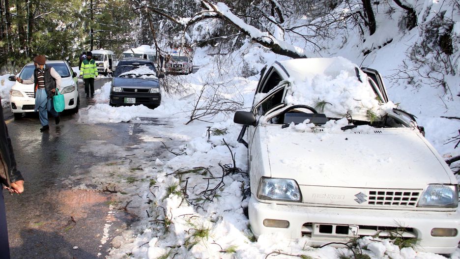 Około 1000 pojazdów utknęło na drodze do miasta Murree. 22 osoby zginęły, w tym dwie rodziny wielodzietne. Silny wiatr, wyrwane drzewa, lawiny śniegu. Droga była zablokowana w obie strony przez kilka godzin. Jak podaje BBC, 8 osób zamarzło na śmierć, pozostałe ze zmarłych 22 udusiły się oparami podczas próby ogrzania samochodów.