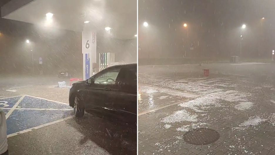Tak wygląda teraz sytuacja na Orlenie w Staszowie, grad do 3-4 centymetrów średnicy. Nawet pod zadaszeniem nie jest bezpiecznie - relacjonował w trakcie nagrania.