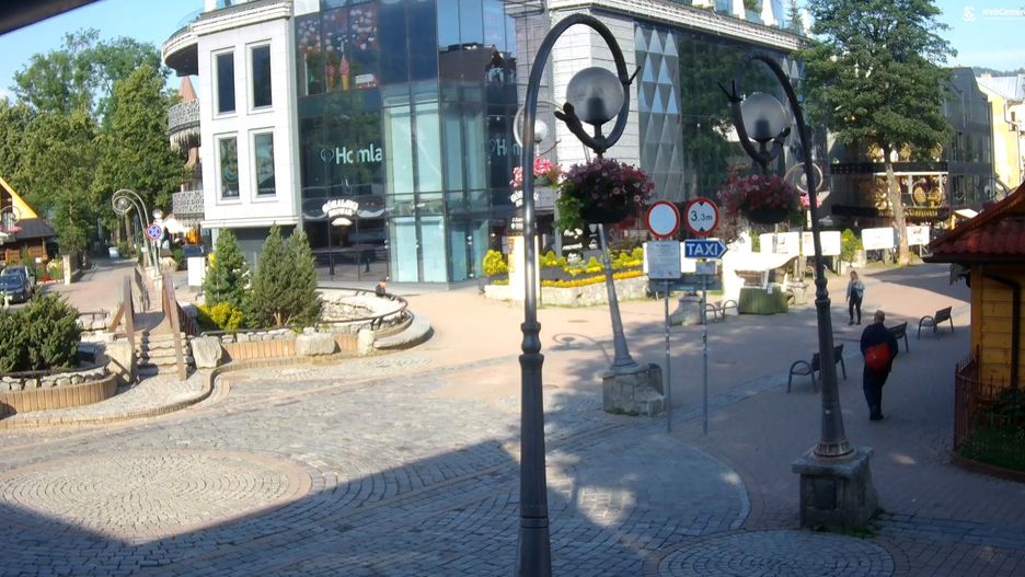 Spoglądamy na widok z kamery, ustawionej prosto na najbardziej obleganą turystycznie ulicę w Zakopanem. Co się okazuje, że... turystów brak. To zaskakujące, nawet biorąc pod uwagę, że jest niemal 9 rano i czwartek. W wakacje zwykle na Krupówkach nie brakowało zwiedzających.