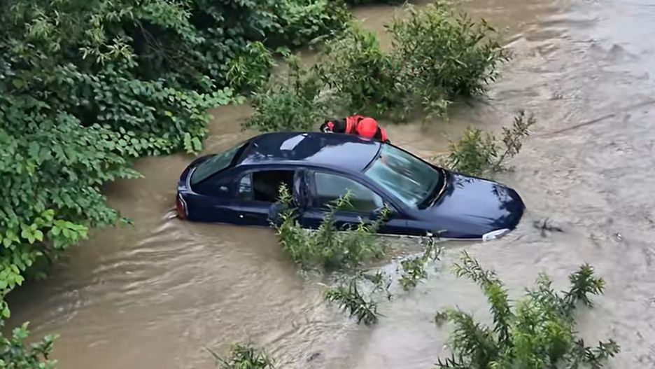 Strażacy otrzymali zgłoszenie dotyczące samochodu pozostawionego w rzece Soła na wysokości miejscowości Łęki. Jak wynika z nagrania, zamieszczonego przez serwis Oświęcim 112, poziom wody w rzece podniósł się w wyniku opadów tak wysoko, że pojazd został wchłonięty przez rzekę.