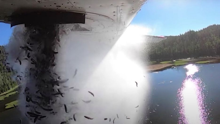 Pracownicy wydziału mieli za zadanie zarybienie ponad 200 odległych jezior w stanie Utah. Dostęp do nich był bardzo utrudniony, dlatego do zrealizowania tego celu wykorzystano samolot. Kiedy maszyna znalazła się bezpośrednio nad akwenem, pilot otwierał luk bagażowy, z którego wypadały tysiące ryb wraz z wodą. Według agencji podczas jednego lotu można zrzucić ich nawet 35 tysięcy. Akcja była na tyle spektakularna, że w sieci pojawiło się nagranie z jej przeprowadzenia.