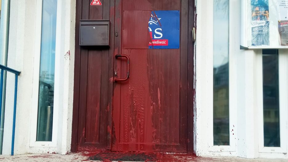 O dewastacji siedziby PiS poinformowała sama partia. Ktoś oblał czerwoną farbą drzwi siedziby PiS, znajdującej się przy ul. Mickiewicza na Pogodnie. Ponadto na chodniku przed budynkiem napisano różowym spray'em fluorescencyjnym "Macie krew na rękach".