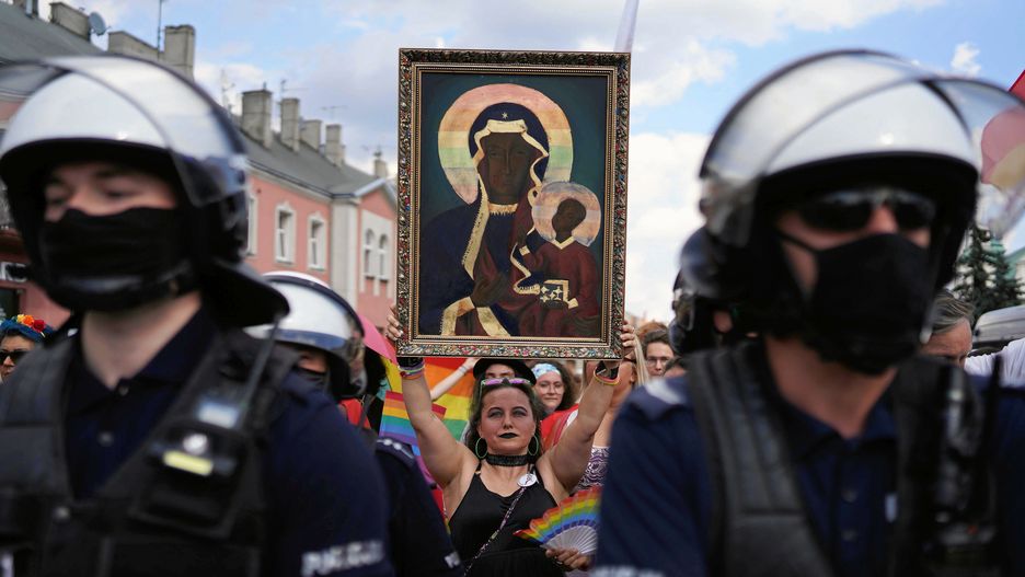 Na Marszu Równości w Częstochowie ponownie pojawił się także obraz z Matką Boską w tęczowej aureoli. Kobieta, która uniosła obraz na pl. Biegańskiego, została spisana przez policję. Sprawą zajmuje się od wtorku Prokuratura Rejonowa Częstochowa-Południe.