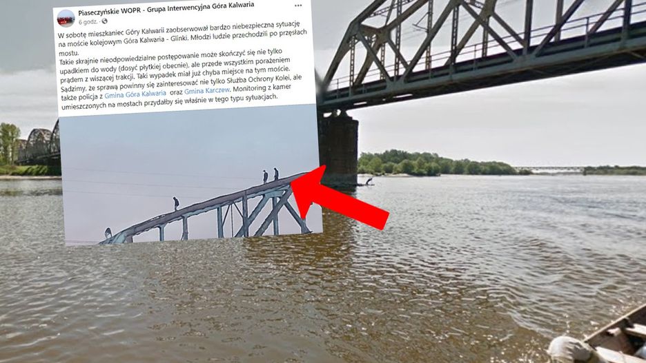 Ogromnym brakiem odpowiedzialność wykazała się grupa młodych osób w Górze Kalwarii (woj. mazowieckie). Jeden z mieszkańców sfotografował, jak chodzą przęsłach mostu kolejowego.