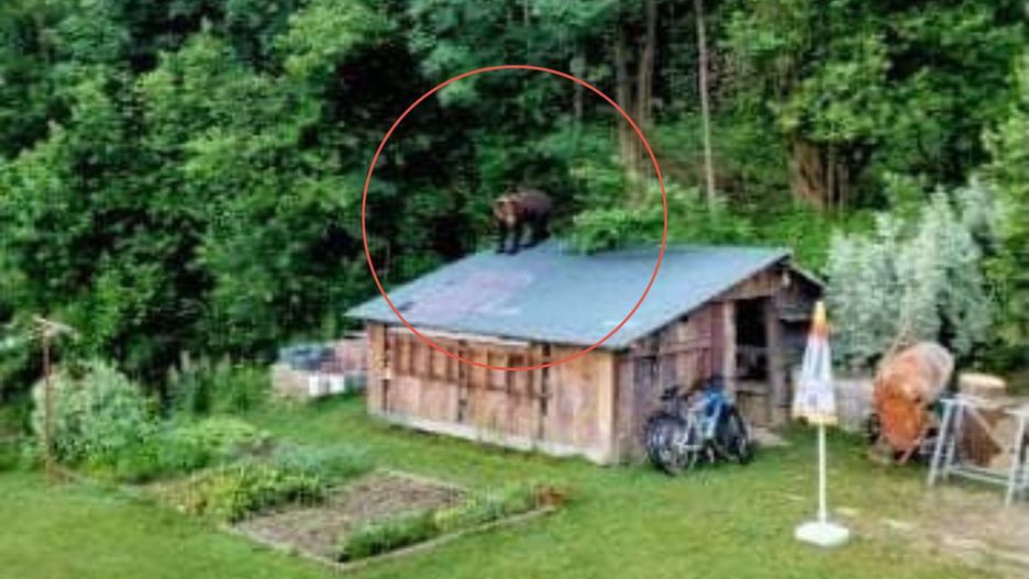 Na fotografii pana Piotra widzimy niedźwiedzia, który wdrapał się na dach drewnianego domu letniskowego. Drapieżnik nie miał daleko, gdyż działka znajduje się tuż na skraju lasu.