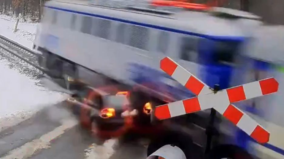 Zignorował czerwone światło na przejeździe kolejowym, niemal został zmiażdżony przez pociąg. Rannego kierowcę przetransportowano do szpitala. Do zdarzenia doszło 16 stycznia 2025 roku w Ozimku w województwie opolskim.