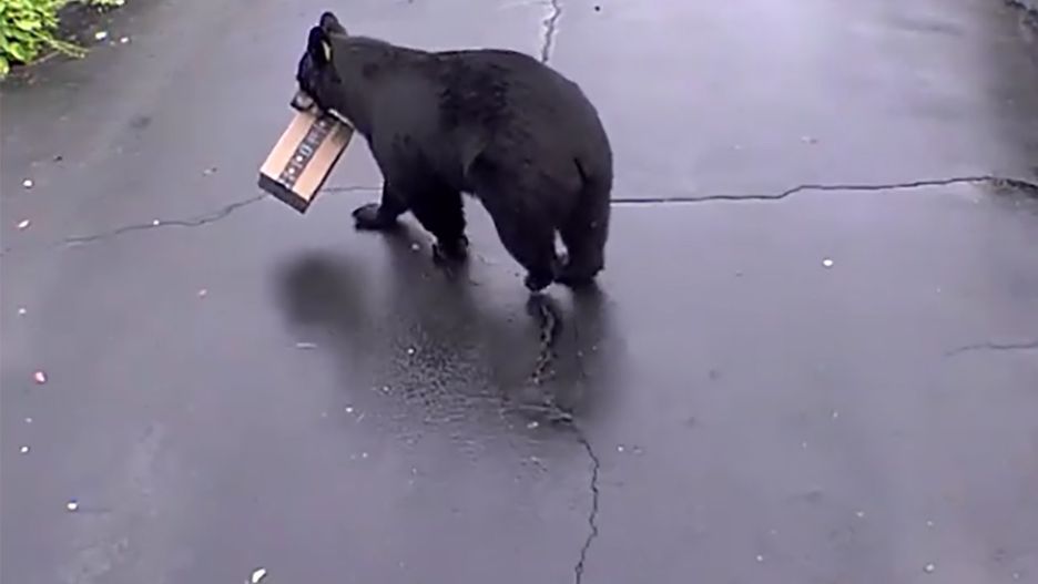 Kristin Levine opublikowała w mediach społecznościowych niecodzienny film. Widać na nim czarnego niedźwiedzia, przechadzającego się z paczką z Amazona w pysku. Zwierzę po chwili oddala się z nią w kierunku pobliskich zarośli.