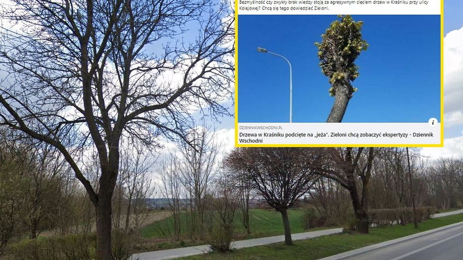 Pozostały kikuty pni, z których część próbuje odrastać, a część uschła. Widok jest żałosny. (...) Wele drzew nie przeżywa tych zabiegów, a te które przeżyją, mają całkowicie zdeformowaną sylwetkę - napisano w liście, przytoczonym przez "Dziennik Wschodni".