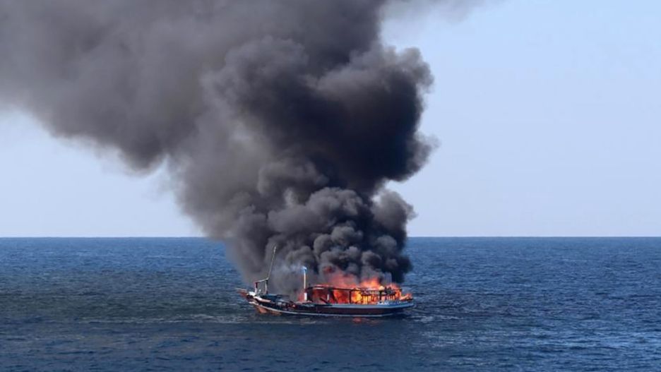Sieć obiegło nagranie z okrętu V Floty Stanów Zjednoczonych. Widać na nim dau – tradycyjny arabski statek żaglowy – należący do irańskich przemytników narkotyków. Jego załoga wylewa na znajdujący się na statku towar łatwopalną substancję. Po chwili niewielką jednostką wstrząsa potężny wybuch.