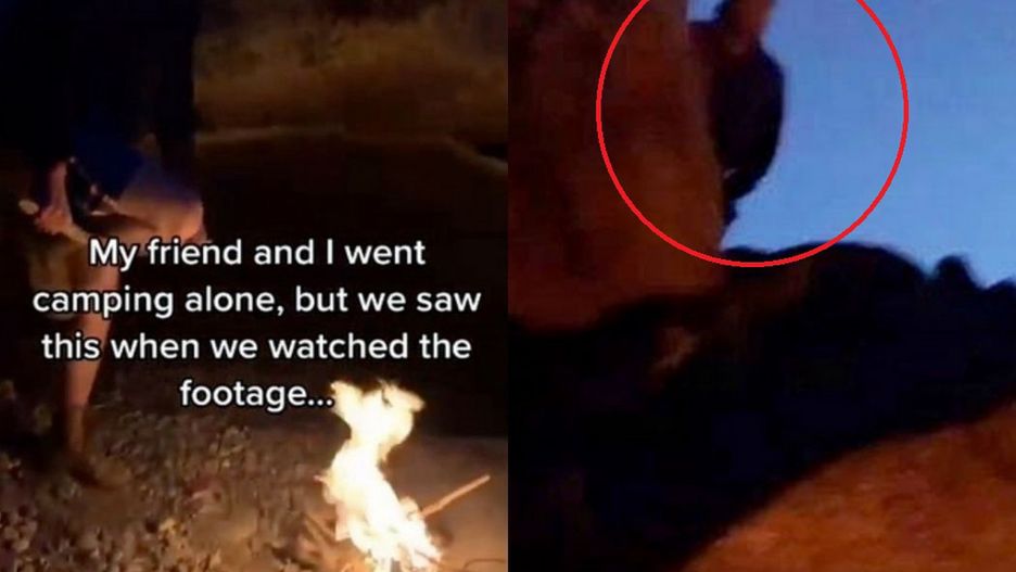 Na udostępnionym nagraniu widać dwójkę przyjaciół - stopy nagrywającego i jego kompana, który w tym momencie dokładał do ogniska. Nagle telefon nieco osuwa się z dłoni i zauważmy kawałek nieba i góry. To nie wszystko. Na górze ktoś stoi i obserwuje chłopaków.