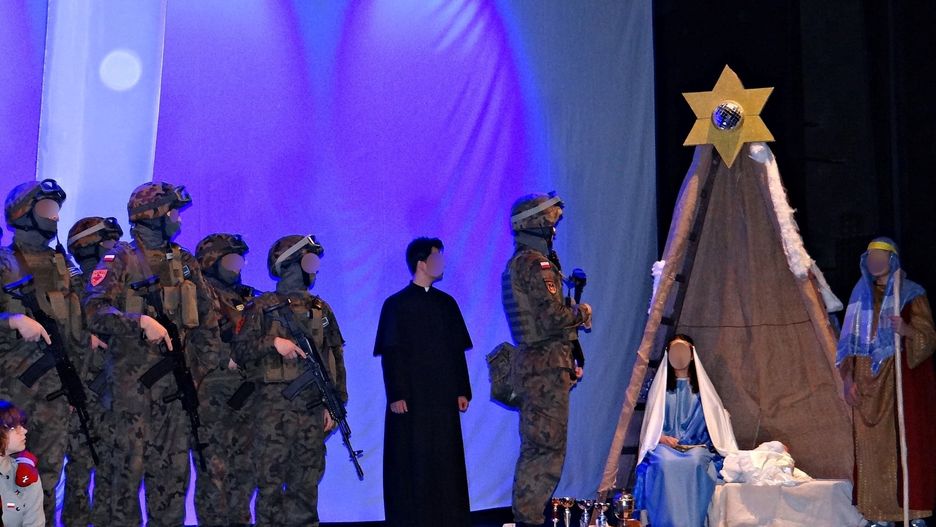 Jasełka w szkole podstawowej w Ełku zdecydowanie różniły się od tradycyjnego bożonarodzeniowego przedstawienia. Oprócz typowych biblijnych postaci do Betlejem przybyli bowiem... żołnierze z bronią w ręku. - Przyszli się pokłonić Jezuskowi i go bronić - wyjaśniła dyrektorka placówki.