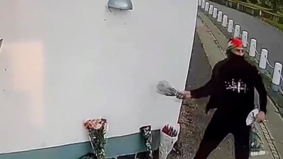 Na nagraniu, które krąży po sieci, widać dwóch mężczyzn, którzy przyszli pod izraelską ambasadę. Mający chusty z barwami narodowymi Palestyny mężczyźni podnieśli kwiaty i zaczęli nimi rzucać. Część bukietów zabrali i udali się w nieznanym kierunku.