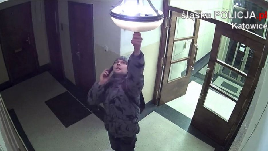 Policja w Katowicach szuka miłośnika żyrandoli. Nagrali, jak wyrywa je z sufitu