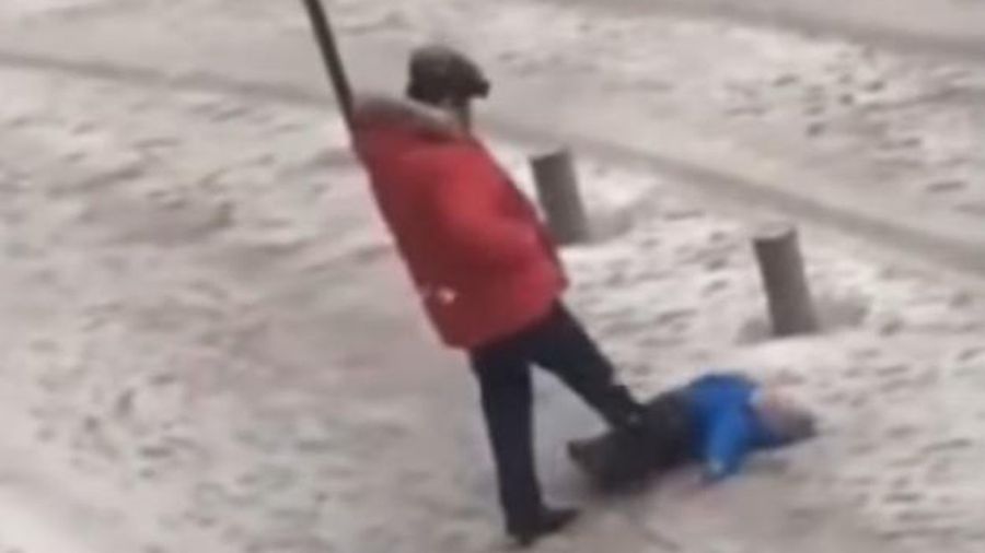 Wstrząsające nagranie. Kopał dziecko, bo nie mogło wstać z oblodzonego chodnika