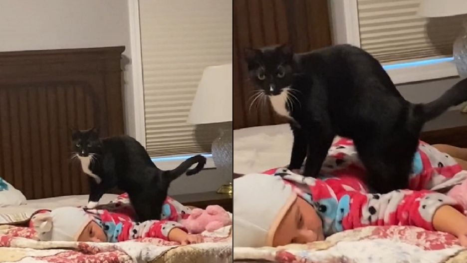 Kot "masażysta" zajmuje się dzieckiem