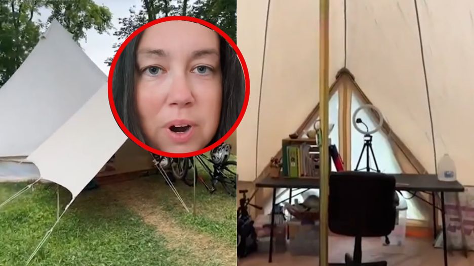 Christine pokazała swój wysoki na 1,5 metra namiot, w którym mieszka wraz z synem o imieniu Brett. Jest z nimi również pies, a w lipcu dołączy jej przyszły mąż. Choć przestrzeń jest mała, kobieta twierdzi, że doskonale się w niej odnajduje.