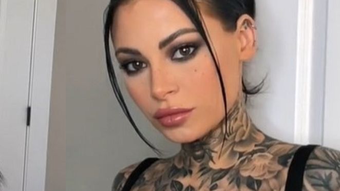 "Kiedy nie powiedziałam rodzinie, że robię sobie tatuaż na gardle i po prostu pojawiłam się na rodzinnym obiedzie" - umieściła w wideo. Następnie odegrała przerażone miny bliskich, gdy ją ujrzeli z rozległym, czarnym malunkiem na gardle i klatce piersiowej.