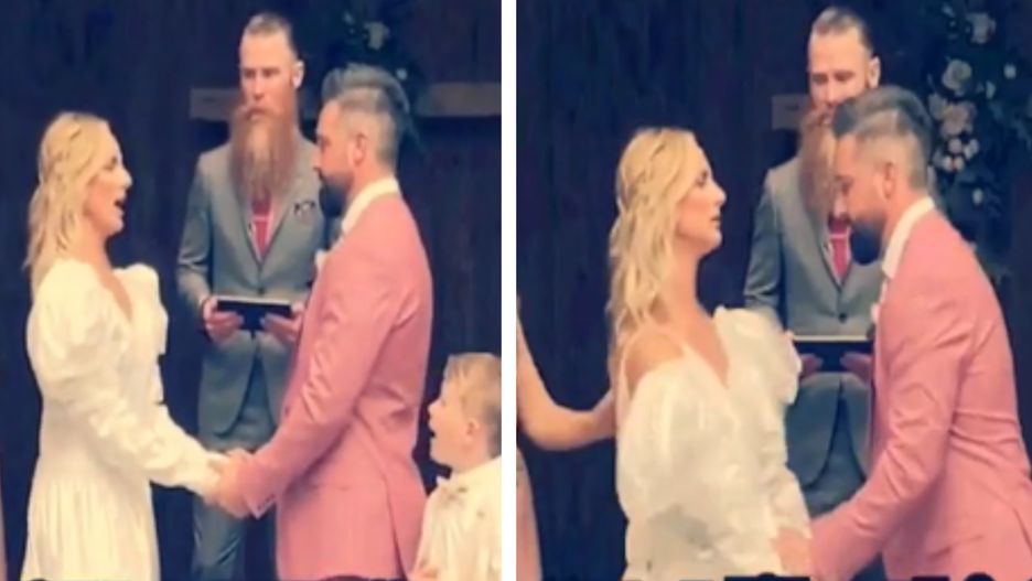 Uwieczniona na nagraniu ceremonia miała miejsce w plenerze i prowadził ją pastor. Jego słowa w pewnym momencie przerwała panna młoda.