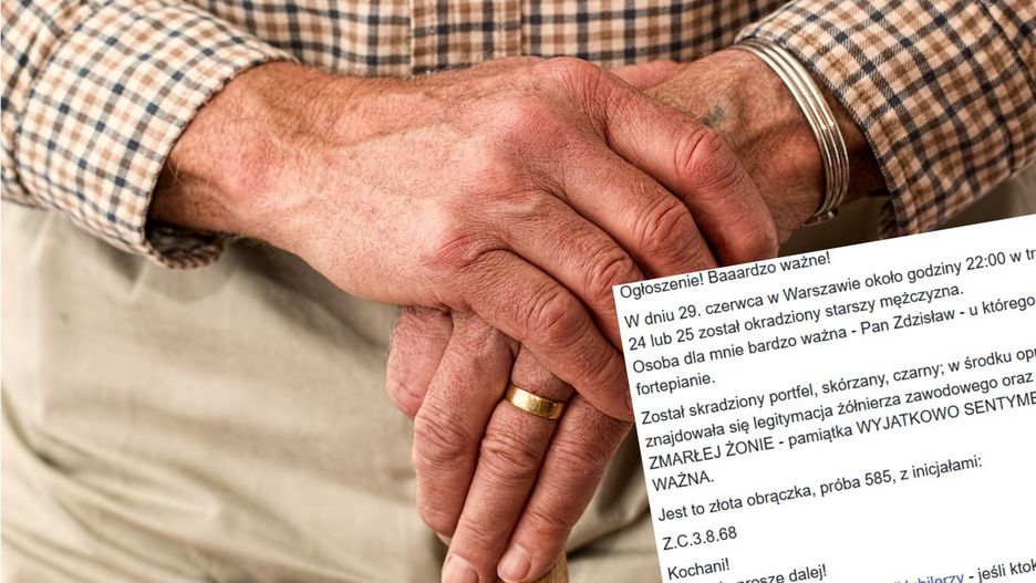 Pan Zdzisław potrzebuje naszej pomocy. W przeciwieństwie do większości osób, choć został okradziony, nie myśli o pieniądzach czy dokumentach. Zależy mu na odzyskaniu tylko jednego: złotej obrączki, pamiątki po zmarłej żonie.