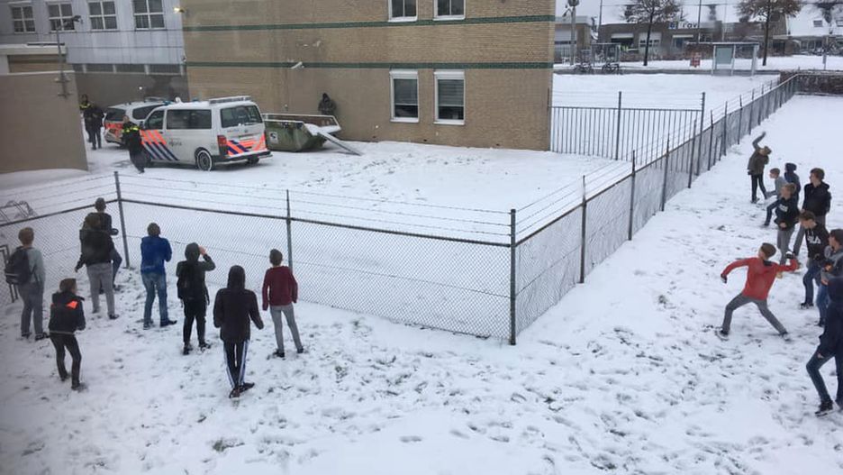 W ubiegłym tygodniu doszło do nietypowego starcia. Po jednej stronie stanęli policjanci, po drugiej uczniowie szkoły średniej RSG Tromp Meesters. Obie grupy były uzbrojone w śnieżki.