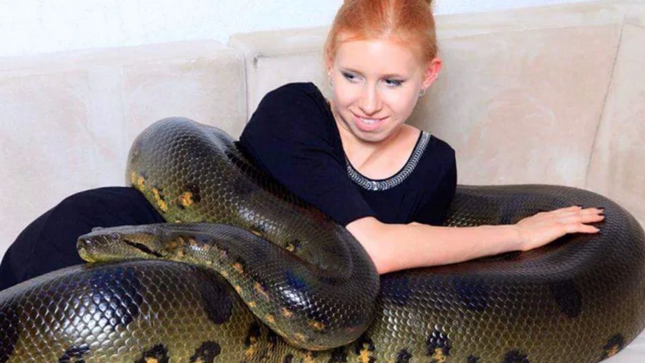 Niemka pozuje z gigantycznymi wężami