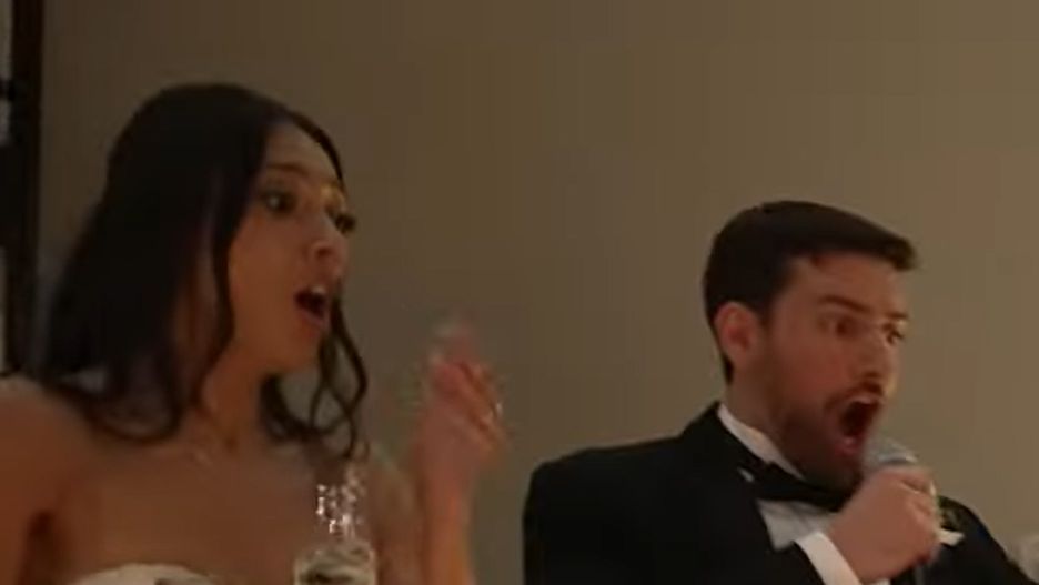 W pewnym momencie mężczyzna potyka się, upada na podłogę, a jego twarz ląduje prosto w pięknym torcie. Para doznała w tamtym momencie prawdziwego szoku. Oboje otworzyli szeroko oczy i złapali się za głowy.