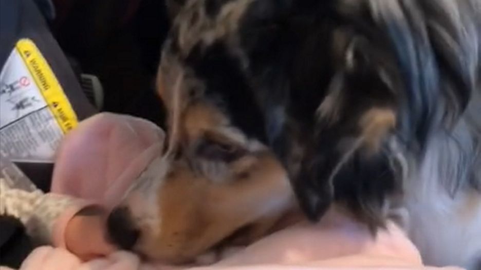 Kobieta nagrała reakcję swojego ukochanego psa na widok noworodka. Na początku czworonóg wpatrywał się z zainteresowaniem w malutkie dziecko. Chwilę później obwąchał je i polizał w rączkę.