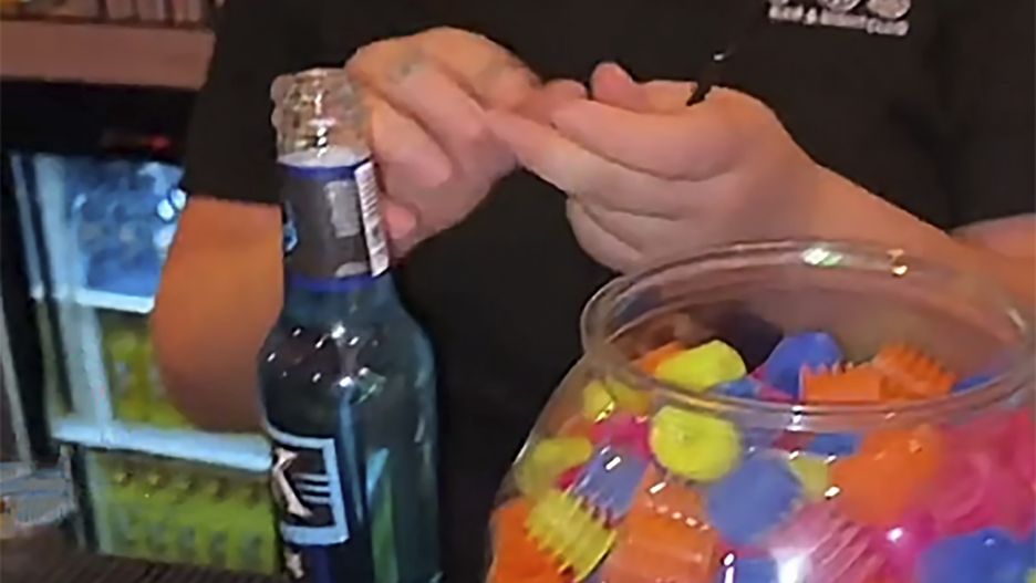 Na filmie widać, jak barmanka przed podaniem klientowi drinka zatyka butelkę przy użyciu plastikowego korka. Następnie wkłada weń słomkę przez wąski otwór.