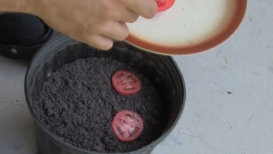 W doniczce umieszczamy ziemię (najlepiej, gdy zaopatrzymy się w specjalną glebę polecaną do uprawy warzyw, którą znajdziemy w większym markecie oraz sklepie ogrodniczym), a na jej wierzchu układamy trzy lub cztery plasterki naszego pomidora. Warzywo przykrywamy cienką warstwą gleby. Od czasu do czasu podlewamy tak przygotowaną sadzonkę wodą.
