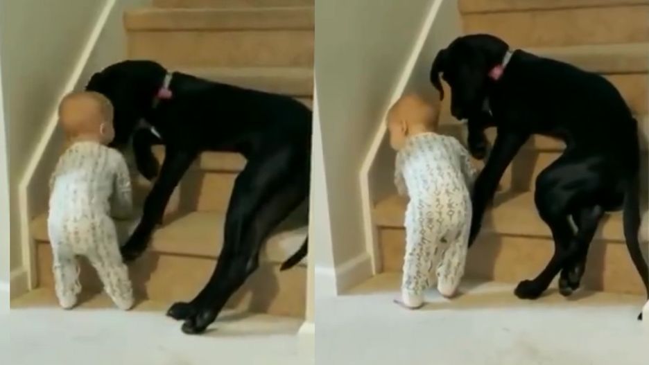 Na uroczym nagraniu widać jak pies kładzie się na schodach, żeby powstrzymać dziecko przed wspięciem się na górę. Mądry zwierzak delikatnie odsuwał malucha łapami i pilnował, żeby nic się nie stało. To nasza #DziennaDawkaDobregoNewsa.