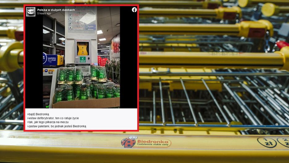 Klienci sieci sklepów Biedronka byli w szoku, kiedy zobaczyli zdjęcie z jednego z marketów. Fotografia przedstawia miejsce umieszczenia defibrylatora. Problem polega na tym, że dostęp do niego utrudniają palety ze... zniczami. Po opublikowaniu zdjęcia na jednym z profili pojawiło się mnóstwo komentarzy.
