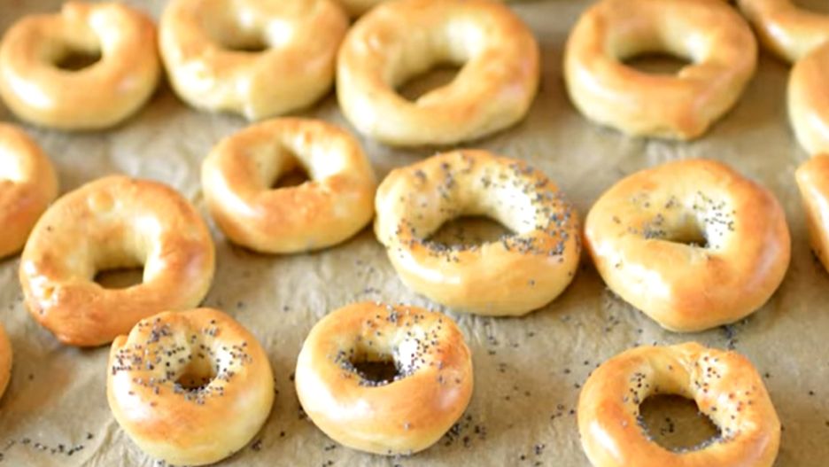 - Wrzucić obwarzanki na osolony wrzątek, wyłowić zaraz po wypłynięciu na powierzchnię.
