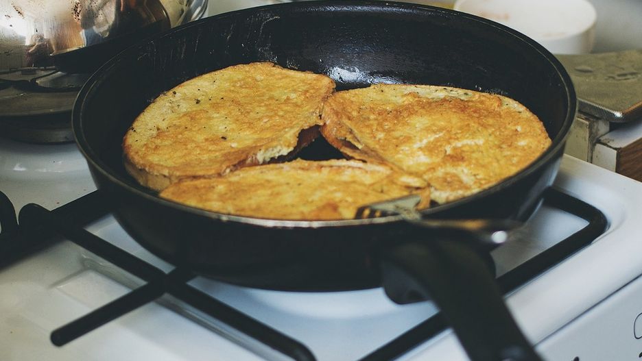 - Na patelni rozgrzej olej, nie powinno być go zbyt dużo, by chleb nim nie nasiąkł