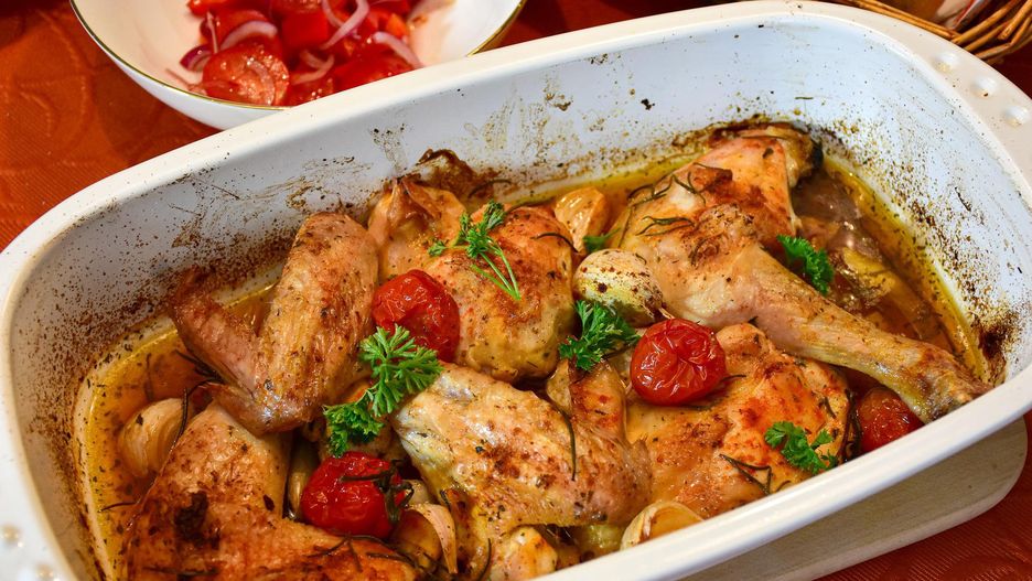 - podudzia obtocz w przygotowanej wcześniej marynacie i ułóż na warzywach
