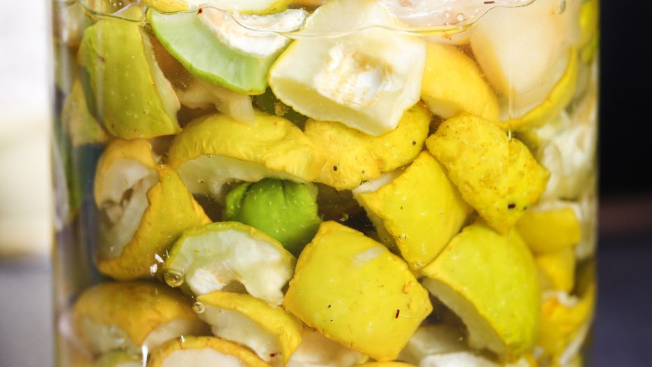 Przygotowanie nalewki z pigwy zaczynamy od dokładnego umycia i osuszenia owoców. Owoce kroimy na mniejsze kawałki i usuwamy z nich gniazda nasienne. Tak przygotowaną pigwę przekładamy do dużego słoja, układając warstwami i każdą z nich przesypując 1 kg cukru.