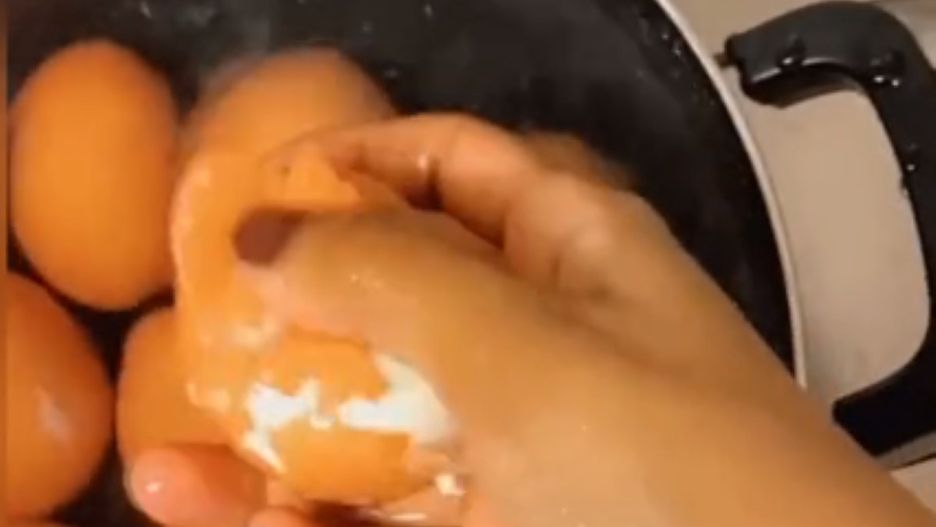Na swoim filmiku Rujina Khaled tłumaczy, jak krok po kroku usunąć skorupki z jajek na twardo. Najpierw gotuje je przez 12 minut, by później zdjąć garnek z ognia i umieścić w zlewie.