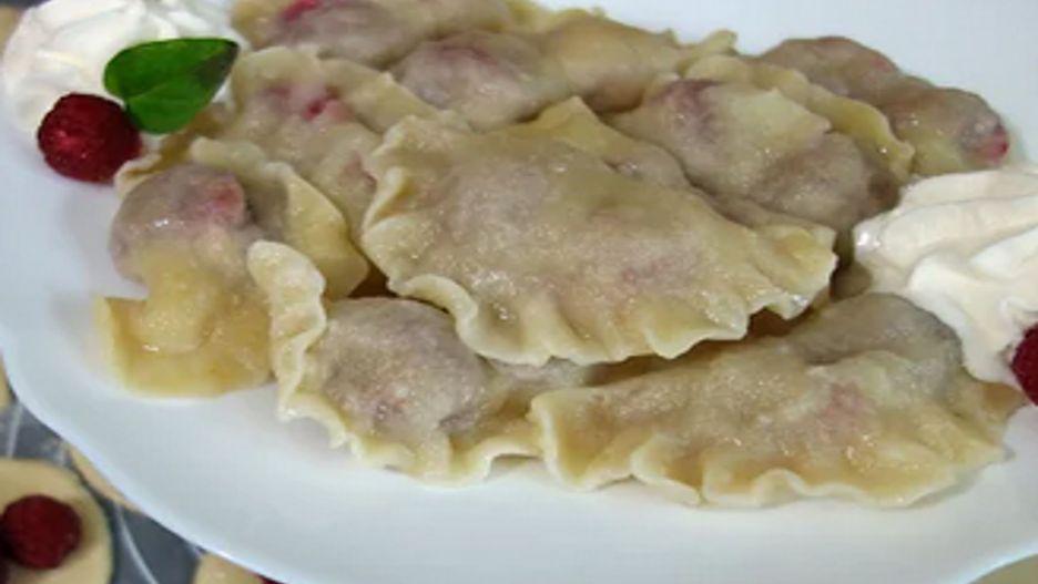 Pierogi z białą czekoladą i malinami. Wykonanie: