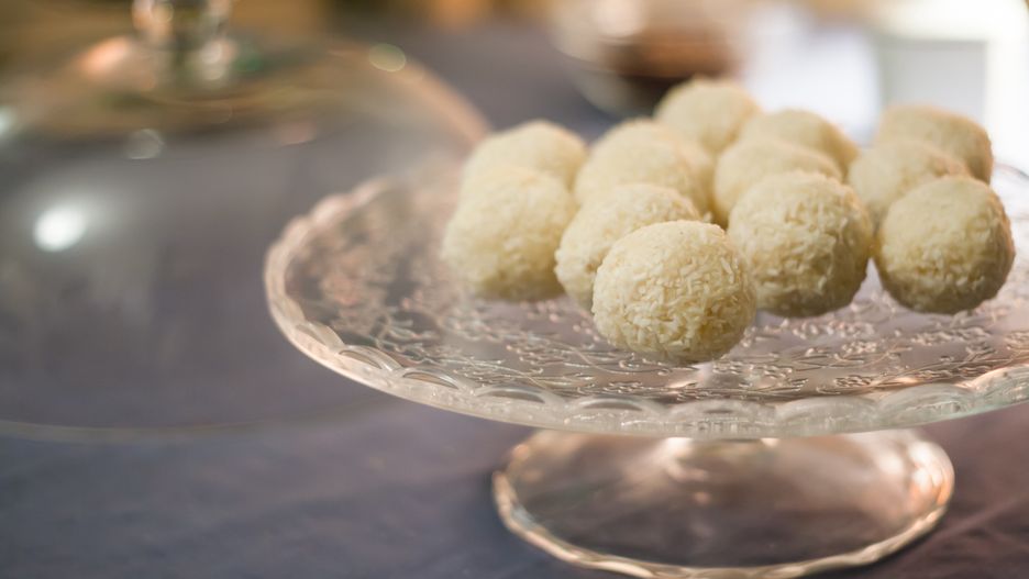 - Obtocz kulki w pozostałych wiórkach kokosowych