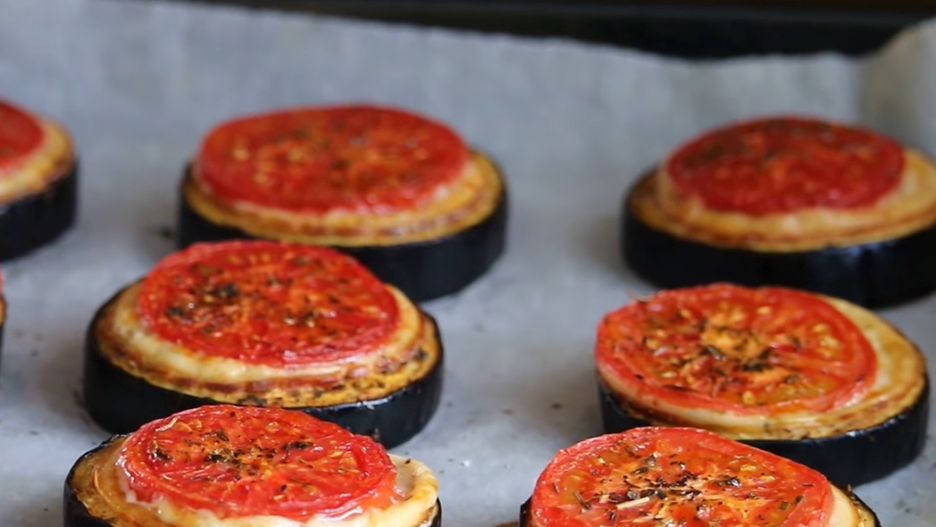 - Piecz na grillu na tacce do momentu, aż bakłażan będzie miękki, a pomidor się przypiecze