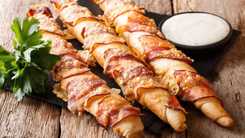 Po wyjęciu patyczków plasterki boczku będą nie tylko chrupiące, lecz także utrzymają swój niezwykły kształt. Jeśli wolisz, aby stały się elementem pełnego posiłku, możesz owinąć je wokół pokrojonych bułeczek lub podawać z jajecznicą.