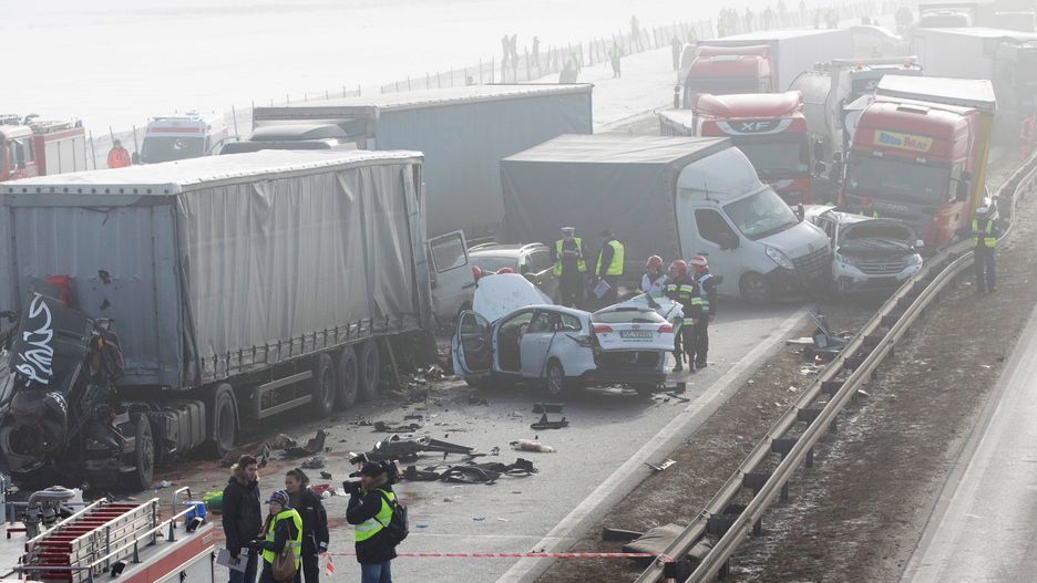 W wypadku nikt nie zginął. Kilkadziesiąt osób jest rannych, z czego sześć w ciężkim stanie. Na drodze panowały dość trudne warunki. Mgła znacząco ograniczała widoczność. Pierwszy karambol pojazdów najprawdopodobniej spowodował kierowca ciężarówki, który wjechał w tył innego TIR-a - informuje TVN24.