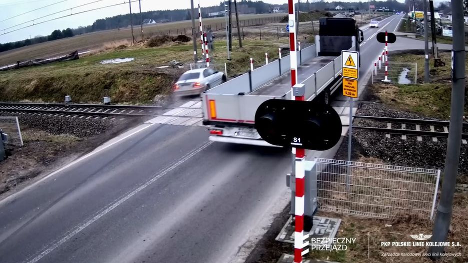 Niebezpieczny incydent miał miejsce w Białej Pajęczańskiej (woj. łódzkie). Choć do zdarzenia doszło 13 lutego, PKP Polskie Linie Kolejowe S.A. zdecydowało się opublikować nagranie dopiero teraz. Sami zobaczcie, co zrobił kierowca bmw...