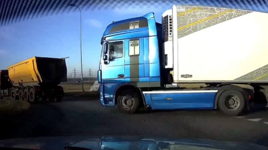 Na jednym z rond doszło do bardzo niebezpiecznej sytuacji. Autor nagrania poruszał się zgodnie z zasadami, gdy nagle wymusił na nim pierwszeństwo kierowca ciężarówki. Ciągnik z naczepą zajechał mu drogę i gdyby nie reakcja nagrywającego to mogłoby dojść do poważnej stłuczki. Zdarzenie zostało nagrane rejestratorem jazdy. Sprawca zamieszania zatrzymał się jeszcze w miejscu i z gestykulował coś z kabiny.