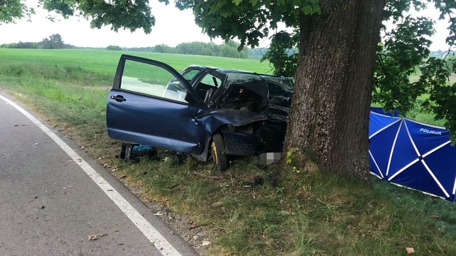 63-letni kierowca z nieznanych dotąd powodów zjechał na przeciwległy pas ruchu i czołowo zderzył się z drzewem na drodze z Purdy do Marcinkowa.