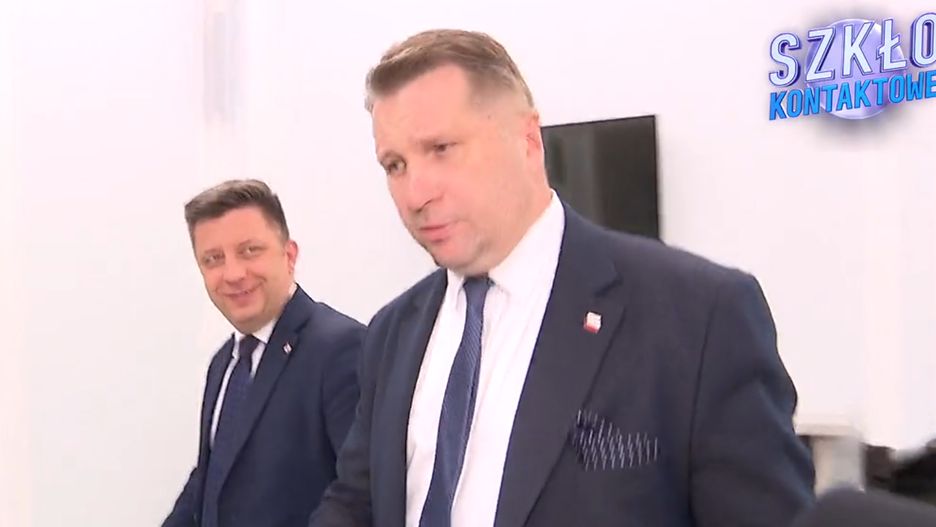 Teraz dziennikarka TVN "złapała" w gmachu Przemysława Czarnka, który szedł w towarzystwie partyjnego kolegi Michała Dworczyka. - Jak państwo będą walczyli o swoje parytety w komisjach, jak mówił o tym Marek Suski. Panie ministrze? - zapytała dziennikarka.