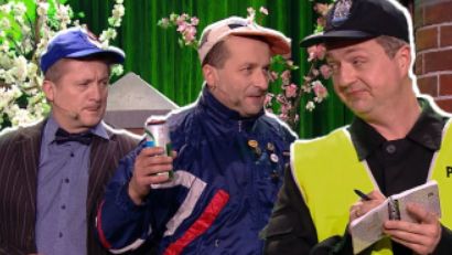 Skecz bawi kontrastem, powaga sytuacji kontra kompletna beztroska bohaterów, policyjna rutyna kontra menelska logika. Czy Gwidon i Romek wymigają się z mandatu? Przekonajcie się sami.