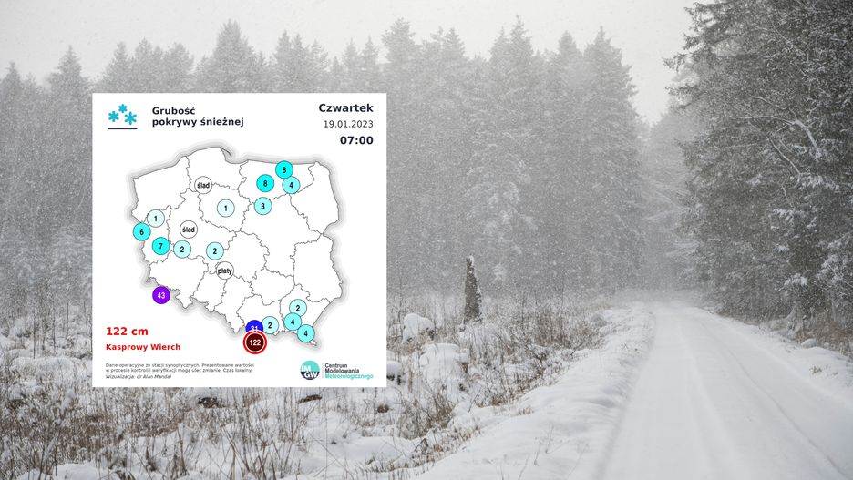 Instytut Meteorologii i Gospodarki Wodnej pokazał w sieci mapkę uwzględniającą grubość pokrywy śnieżnej. Wynika z niej, że na Kasprowym Wierchu wynosi ona aż 122 cm. W Zakopanem natomiast pokrywa śnieżna przekroczyła 30 cm. Warunki do jazdy samochodem są złe.