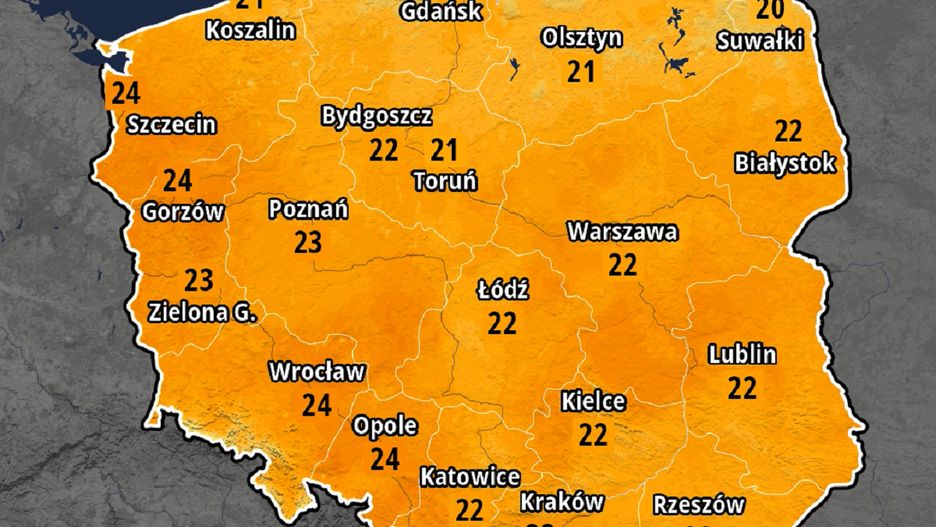 Jak podkreśla PAP, w nocy zachmurzenie będzie małe i umiarkowane, a temperatura spadnie do 12-14 st. C, nad morzem do 15-17 st. C. W kotlinach górskich może być chłodniej, od 7 do 10 st. C.