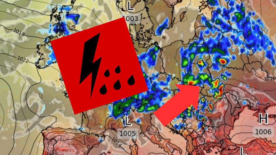 Jednocześnie nad Węgrami utworzy się wtórny ośrodek niżowy. Z niżami tymi związany będzie front atmosferyczny, który nasunie się nad Polskę od południa, stopniowo przemieszczając się w kierunku północnym i zachodnim. Towarzyszyć temu będzie napływ stosunkowo ciepłej, polarno-morskiej masy powietrza oraz spadek ciśnienia atmosferycznego. W związku z tym prognozowane są burze oraz intensywne opady deszczu.